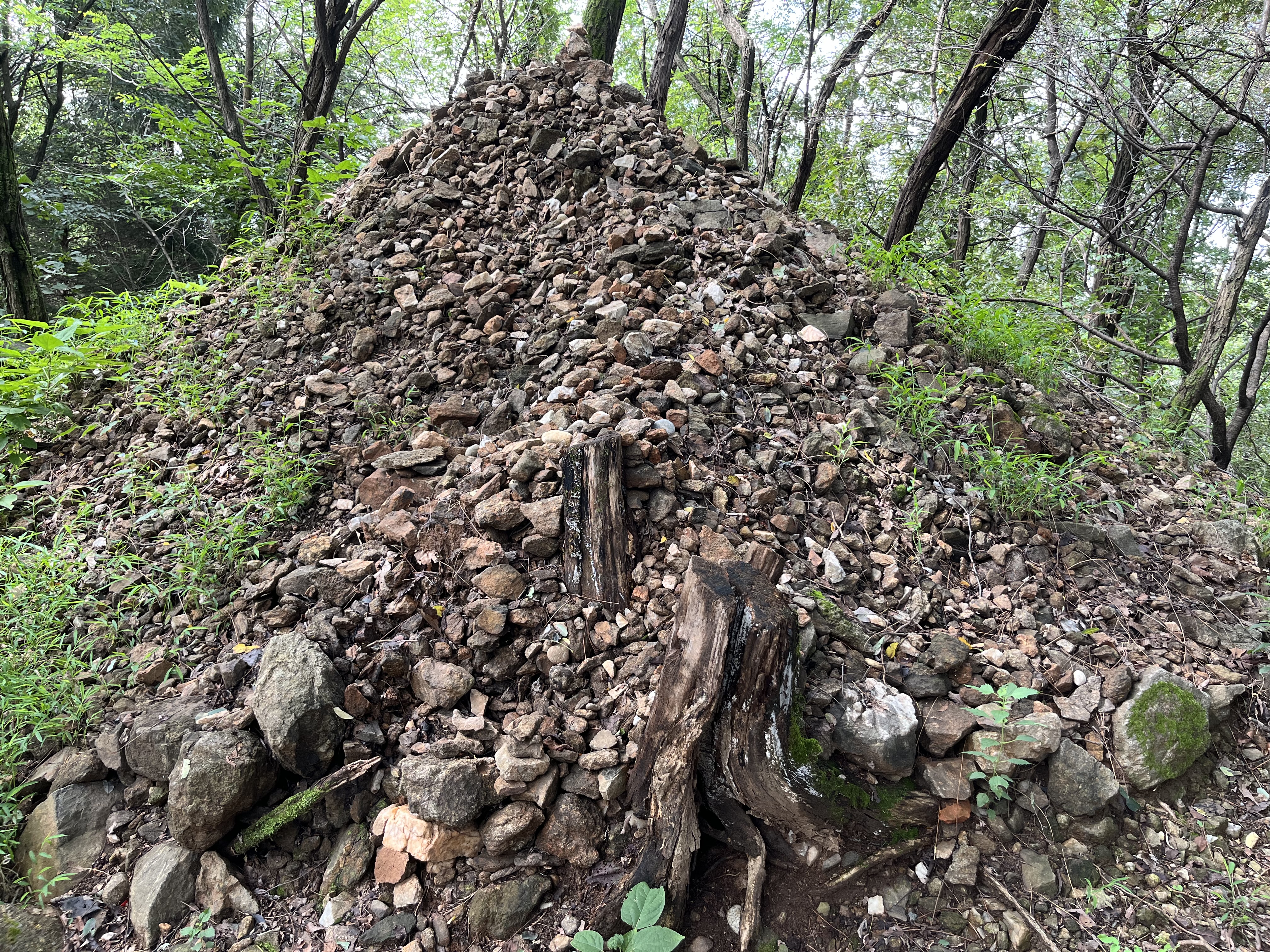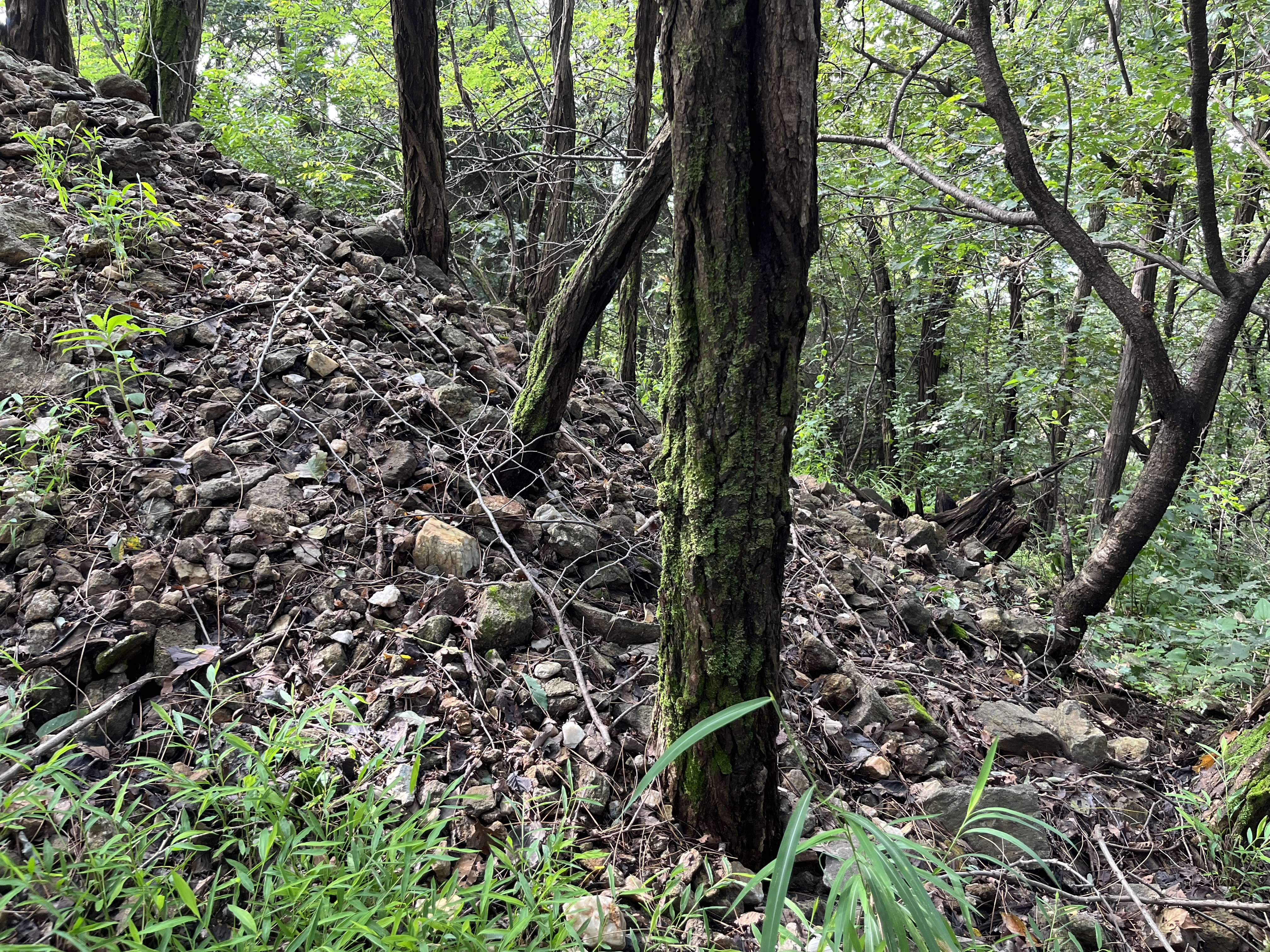 돌탑으로 조성된 것과 이곳의 돌로 쌓인 산더미는 누가봐도 버려진 돌을 그저 쌓아놓은 방치된 쓰레기로 보임. 점점 주변의 나무를 압박하기까지 하고 있고 비가 오면 쓸려내릴 위험도 있으므로 반드시 조치가 필요함.