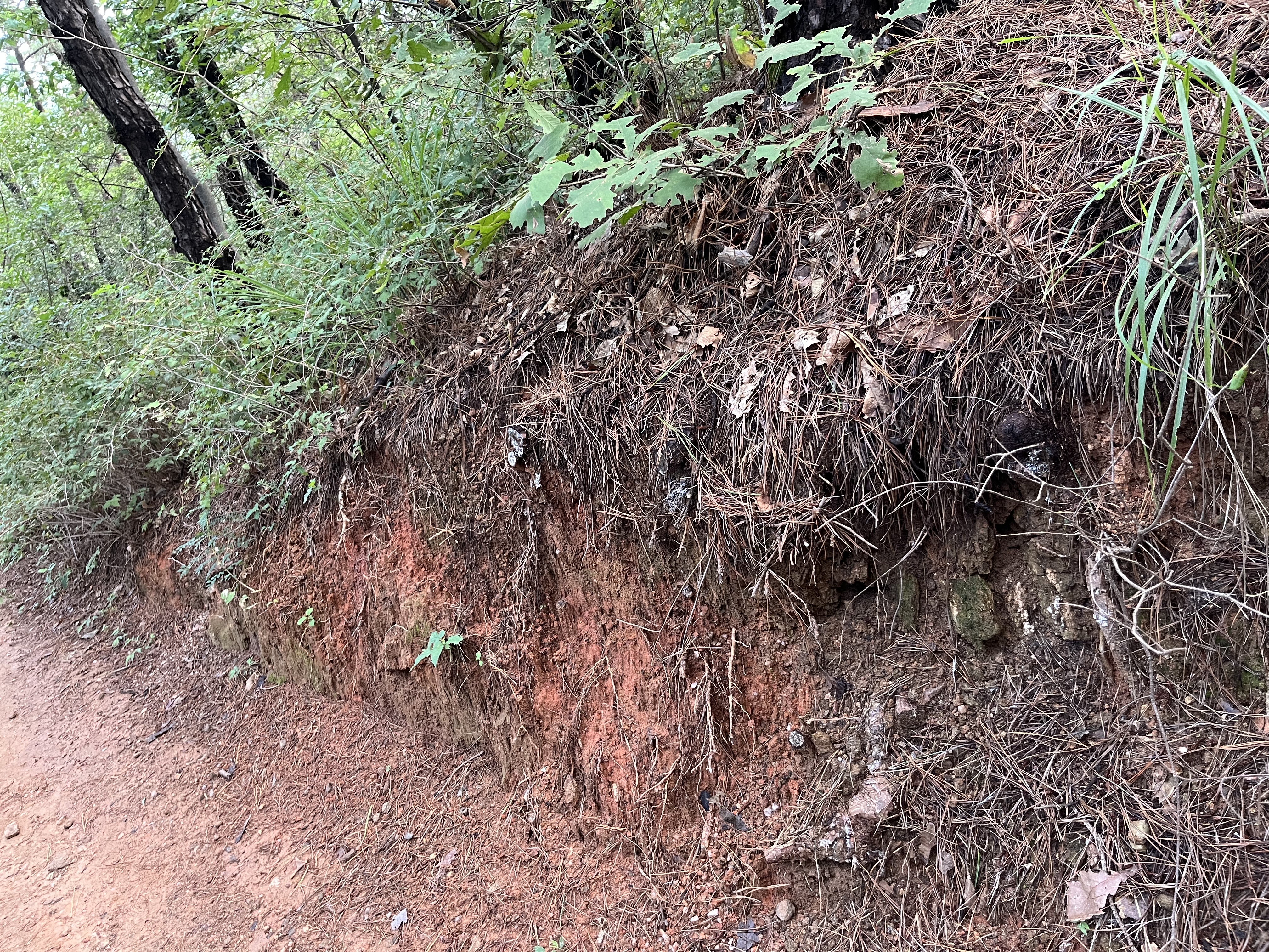 폭우로 침식이 더 심각해져서 관리와 보강이 절실해짐. 길을 넓히면서 생긴 흔적들이 한 달 사이 더 침식이 된 상태임.