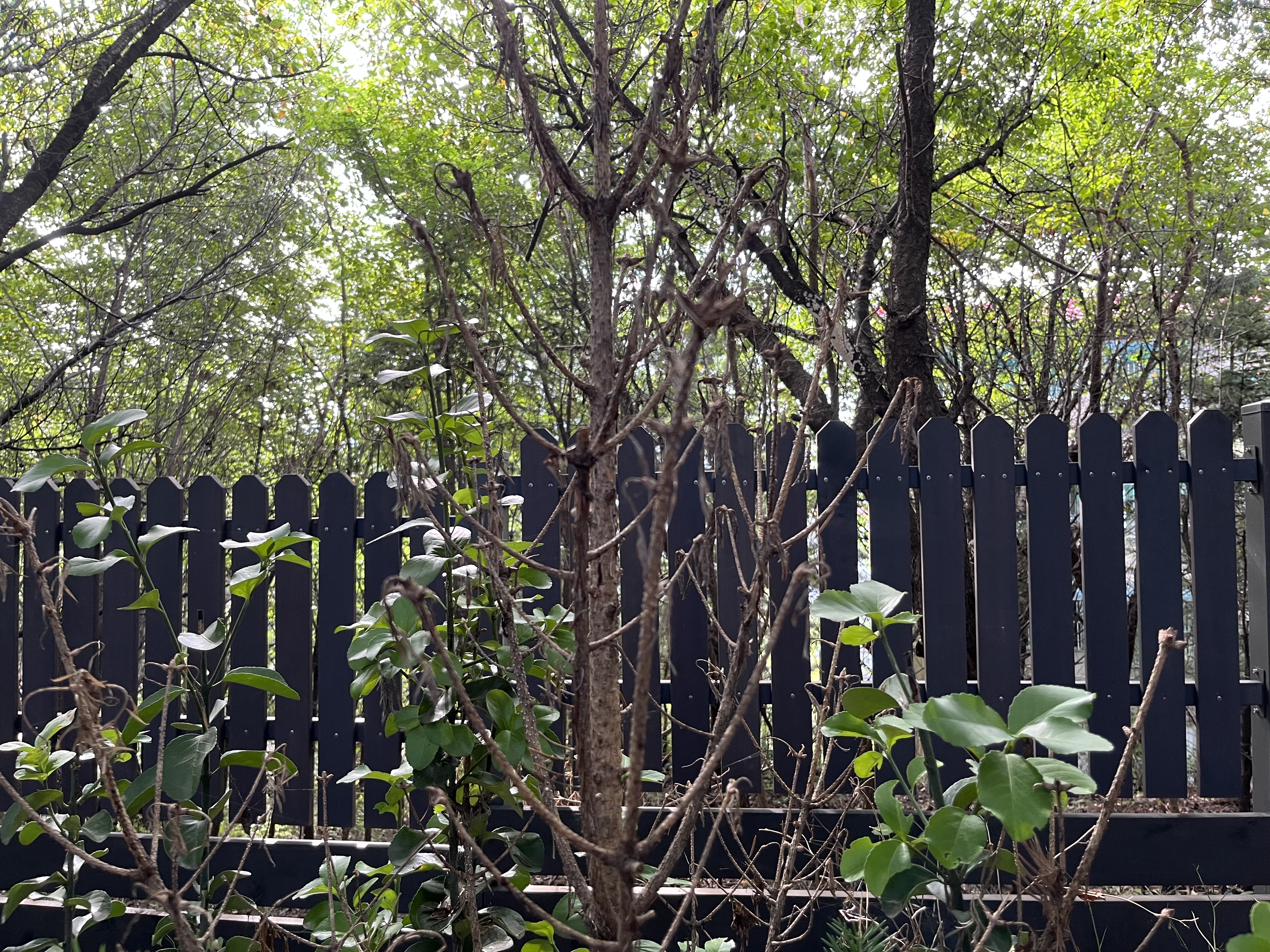 또한 해가 들지 않는 곳에 식재한 황매화는 잎생장도 좋지 않으며 꽃도 피지 않음. 이전에도 식물이 잘 자라지 않던 곳이어서 이런 장소에 인위적인 식재는 고려가 될 필요가 있음